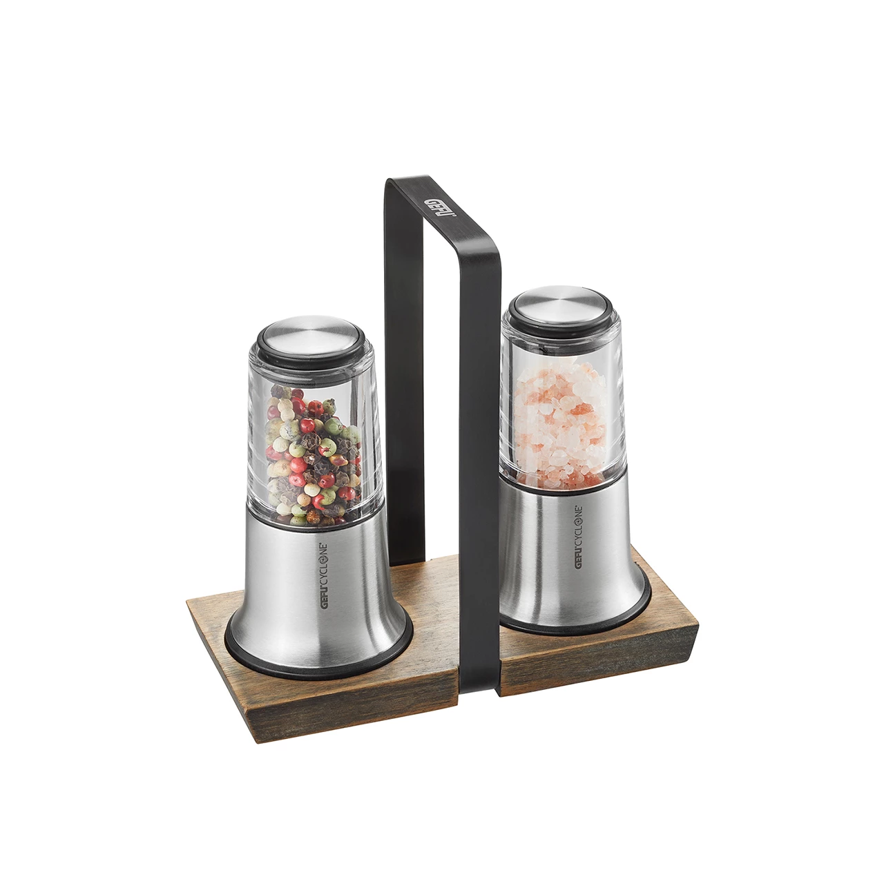 So schön kann Würzen sein: das exklusive Set ist ein echtes Highlight für das stilvolle Zuhause von heute. Beide Mühlen sind mit dem besonders effizienten CYCLONE®-Präzisionsmahlwerk ausgestattet, das stets für den perfekten Mahlgrad sorgt – von extrafein bis extragrob. Mit einer X-PLOSION® entfalten Pfeffer und Salz ihren vollen, natürlichen Geschmack. Komplettiert wird das Set durch eine edle Holzmenage mit praktischem Tragegriff. Das ideale Geschenk selbst für verwöhnte Kochkünstler.