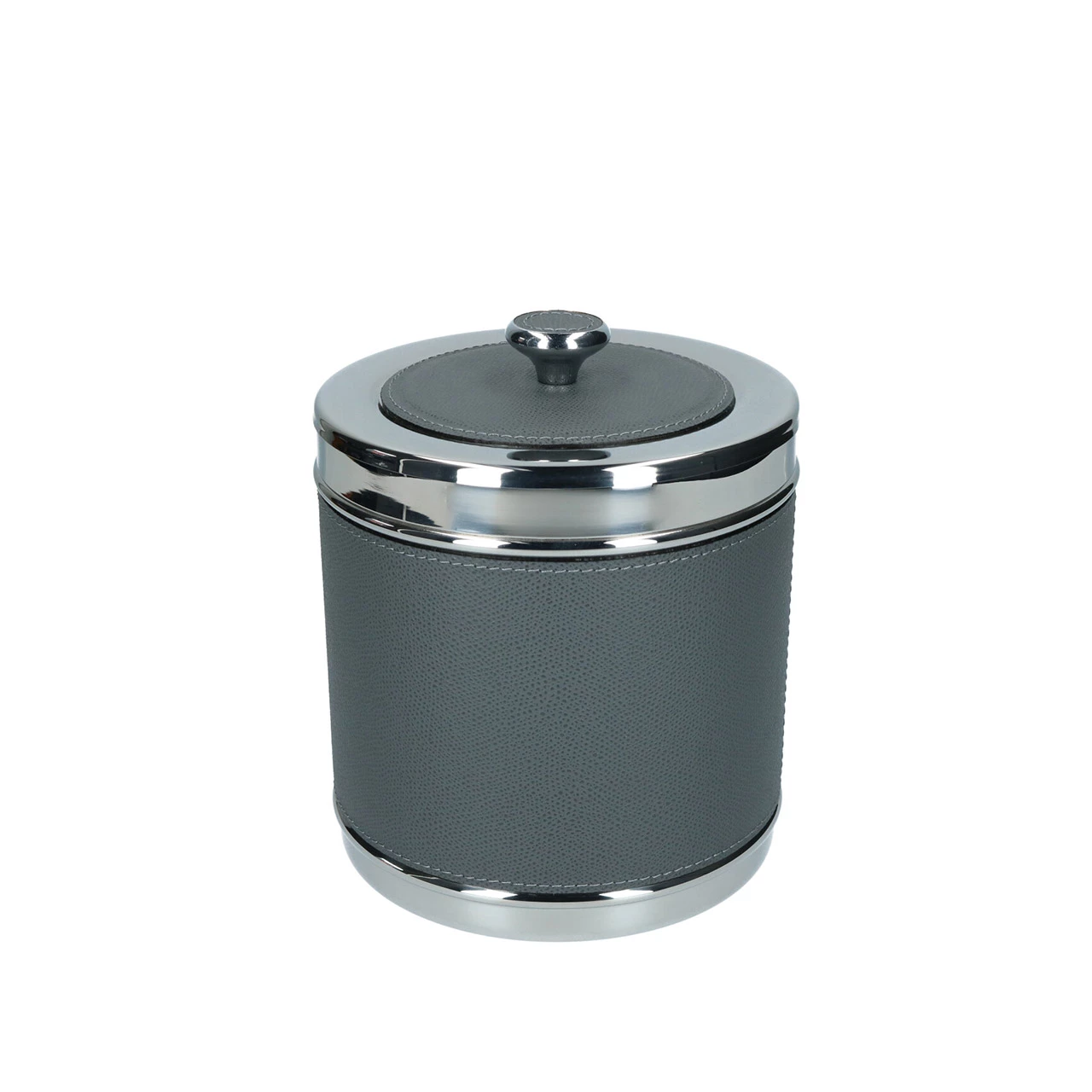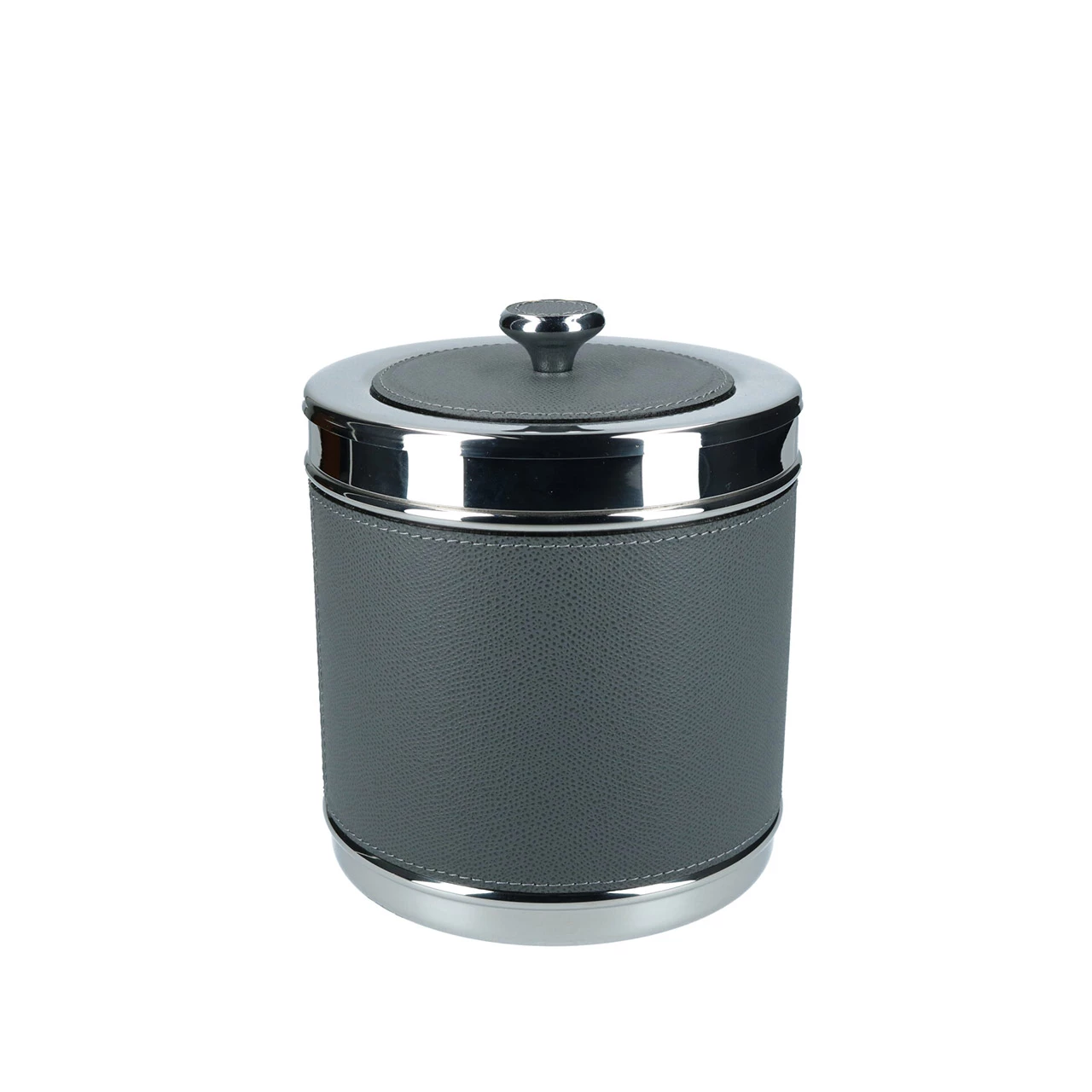 Mit der Kollektion Ocean bringt das Haus Giobagnara italienische Eleganz in jedes Wohnambiente – auf dem Boden wie auch auf Wasser. Die Produkte der Kollektion zeigen sich nicht nur in nuancierter Farbauswahl und hochwertigen Materialien. Sie sind ideale, zeitlose Begleiter für Ausflüge auf dem Boot und sorgen jederzeit für perfekt temperierte Getränke. Der verchromte Eiseimer hat einen Durchmesser von 16 cm und eine Höhe von 19 cm. Der Behälter samt Deckel wird von feinem, dunkelgrauem Golf-Kalbsleder umzogen, das von einer gleichfarbig abgesteppten Naht vollendet wird.