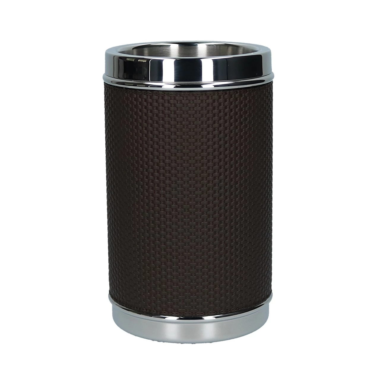 Mit der Kollektion Ocean bringt das Haus Giobagnara italienische Eleganz in jedes Wohnambiente – auf dem Boden wie auch auf Wasser. Die Produkte der Kollektion zeigen sich nicht nur in nuancierter Farbauswahl und hochwertigen Materialien. Sie sind ideale, zeitlose Begleiter für Ausflüge auf dem Boot und sorgen jederzeit für perfekt temperierte Getränke. Der verchromte Flaschenkühler hat einen Durchmesser von 13 cm und eine Höhe von 21,5 cm. Der Kühler wird von feinem, braun-schwarzem Bellagio-Kalbsleder umzogen, das von einer gleichfarbig abgesteppten Naht vollendet wird.