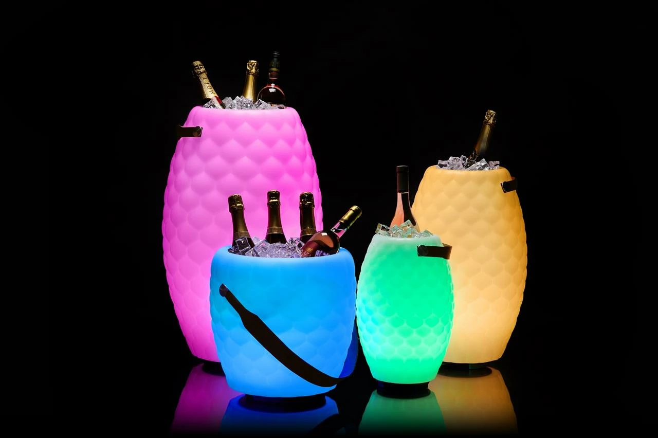 Beschreibung: Beleuchteter Getränkekühler mit Lautsprecher