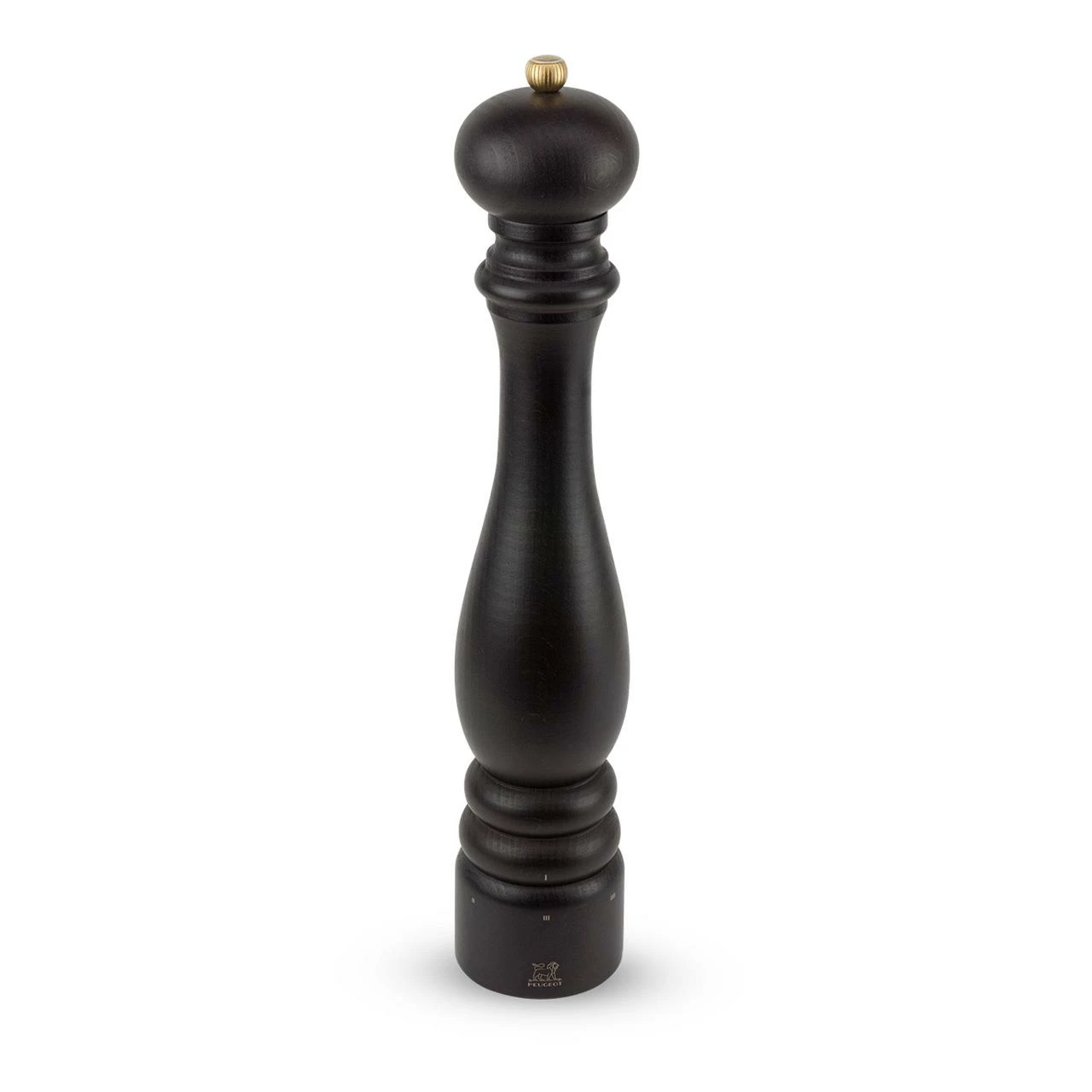 Mit ihrer emblematischen Silhouette und dem patentierten System für die Mahlgradeinstellung spricht diese Paris Pfeffermühle in schokofarben alle Sinne an.