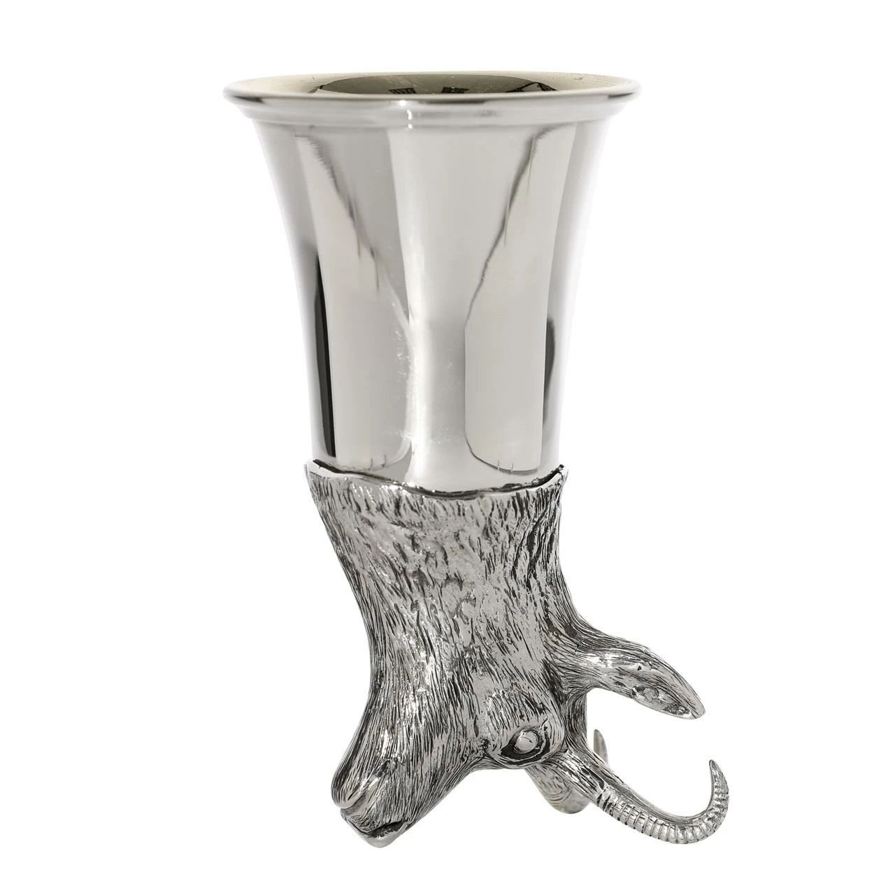 Dieser Jagdbecher mit Gamskopf ist beidseitig stellbar, hochwertig innenvergoldet .