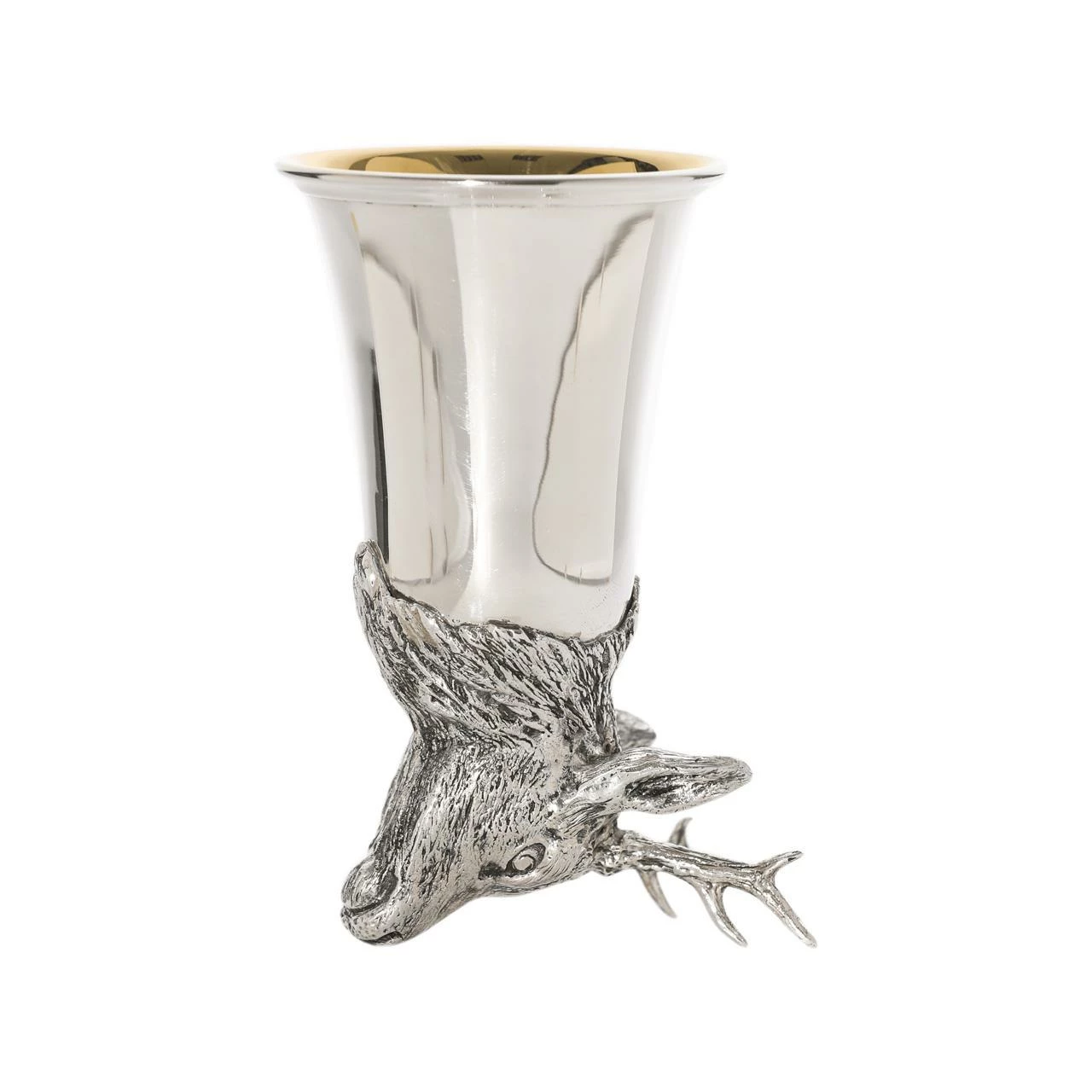 Dieser Jagdbecher mit Rehbockkopf ist beidseitig stellbar, hochwertig innenvergoldet .